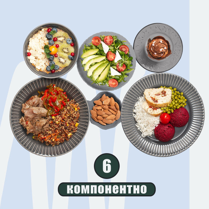 6-компонентно здравословно меню богато на протеини, подходящо за хора с по-висока двигателна активност и динамично ежедневие. Съобразено изцяло с твоите цели, нужди и вкусови предпочитания.